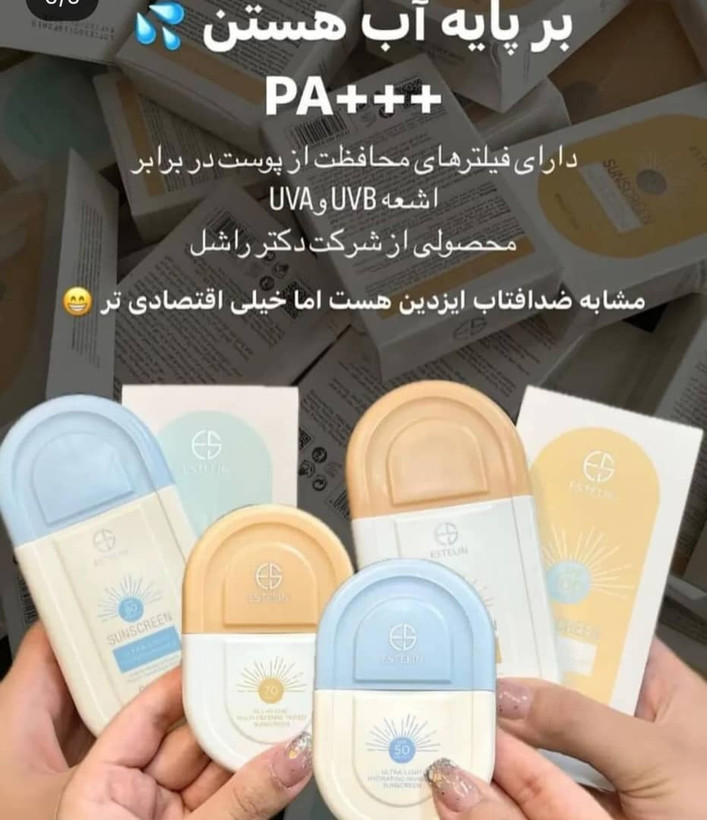 کرم ضدآفتاب ESTELIN در دو حجم ۵۰ میل و ۱۰۰ میل