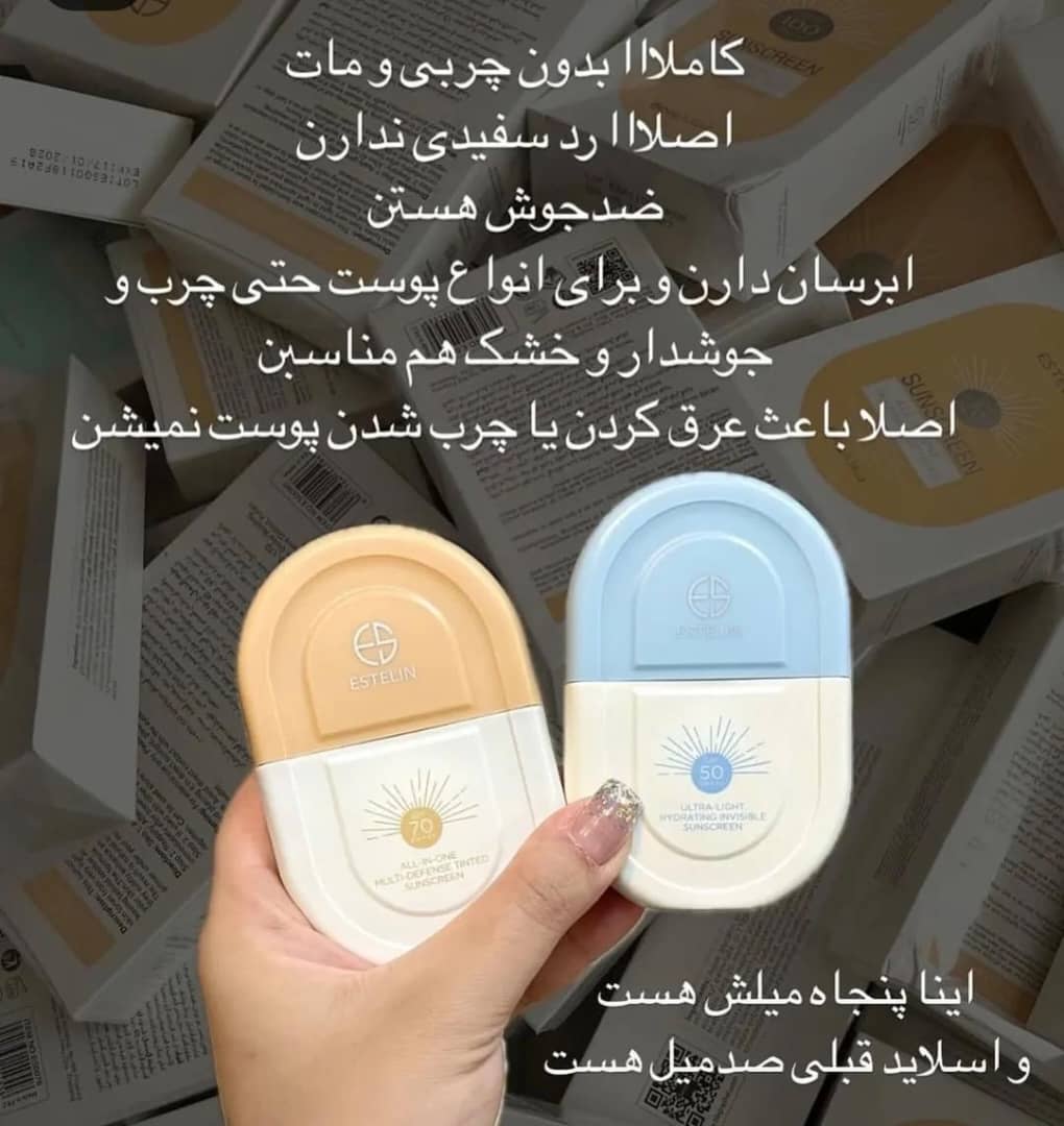 کرم ضدآفتاب ESTELIN در دو حجم ۵۰ میل و ۱۰۰ میل